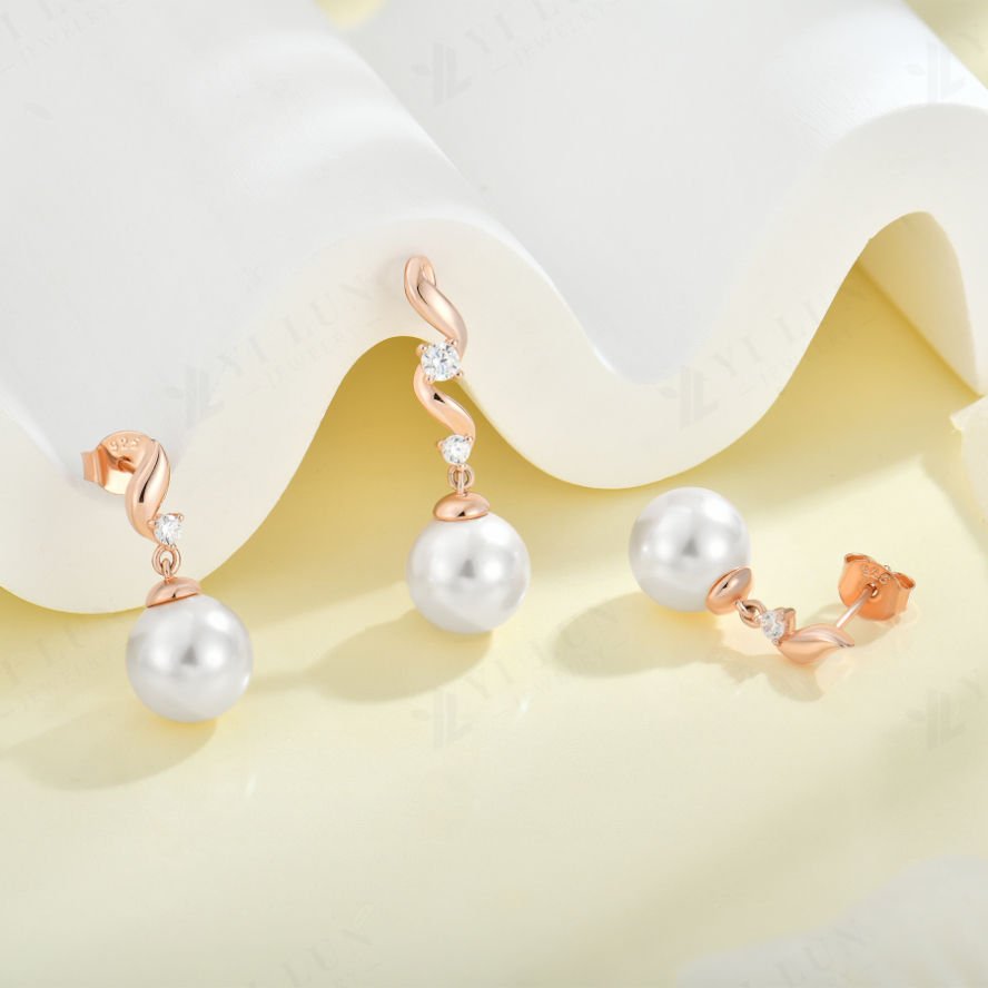 AVICALA Women’s Pearl Pendant + Earrings set | 18k Rose Gold plated |